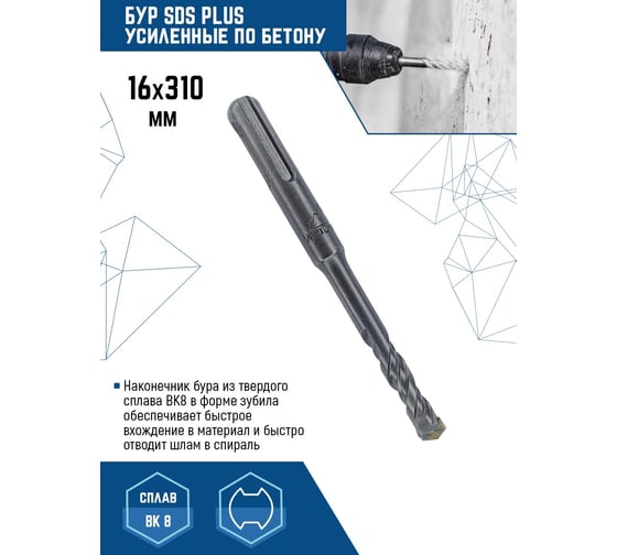 Бур SDS-Plus 8x310мм VERTEXTOOLS